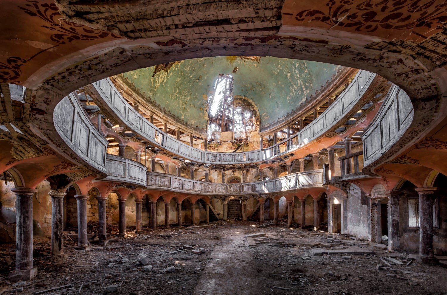 Veillon, on his part, has also felt fascinated by these places from an early age. A travel and photography enthusiast, he specialized in exploring abandoned heritage all over the world. He currently focuses on capturing the beauty in these forgotten and damaged sites, by immortalizing them as if they were frozen in time.